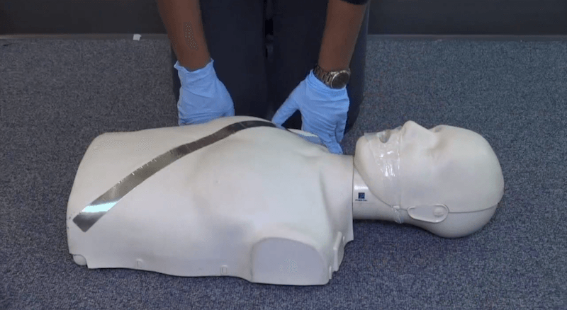 - Click the mouse on the chest to apply compressions. (30 compressions per cycle at 100-120 beats per minute)